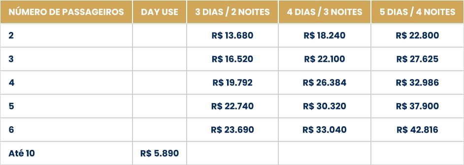 Nossos passeios são totalmente personalizados, e o valor depende da duração, roteiro e número de passageiros. Trabalhamos com pacotes exclusivos que incluem hospedagem, alimentação all inclusive, equipe completa e experiências sob medida.